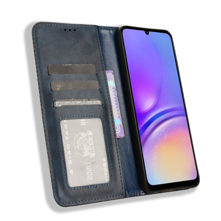 Funda para Teléfono Samsung Galaxy A05 Cuero Textura Retro Hebilla Magnética (Azul)