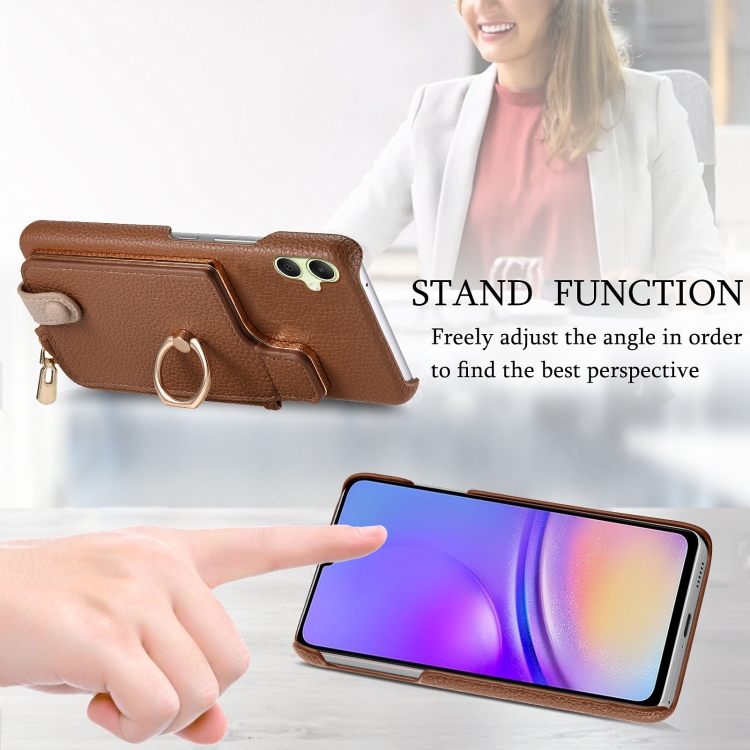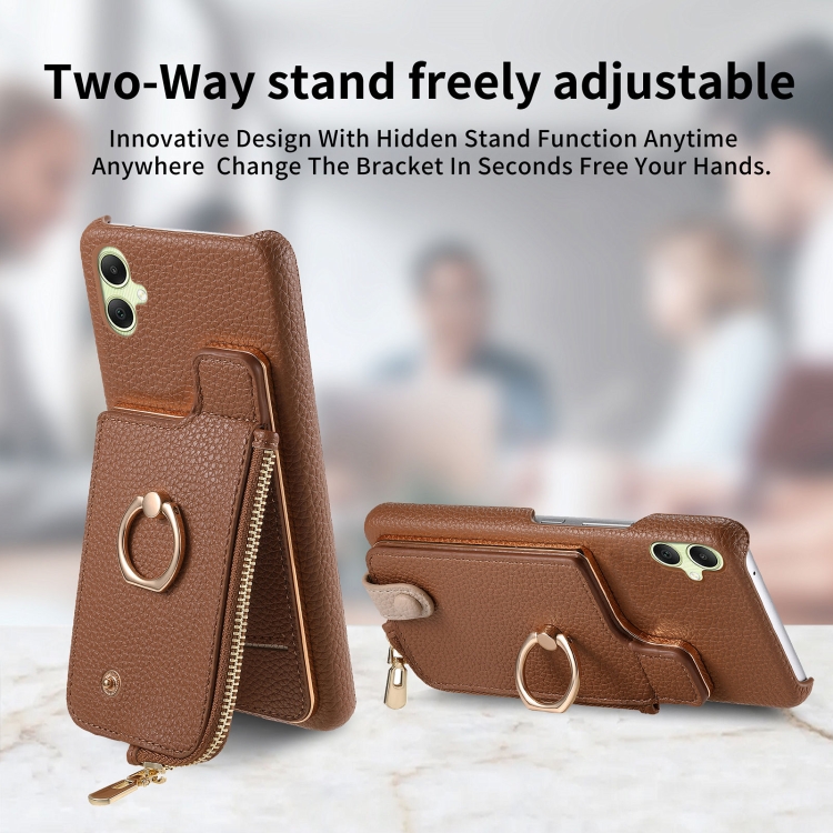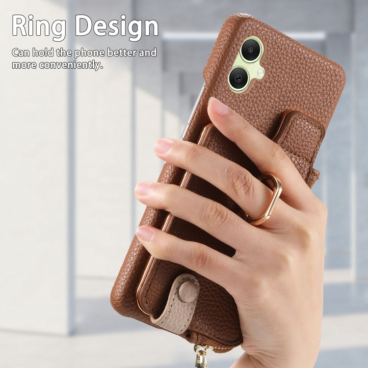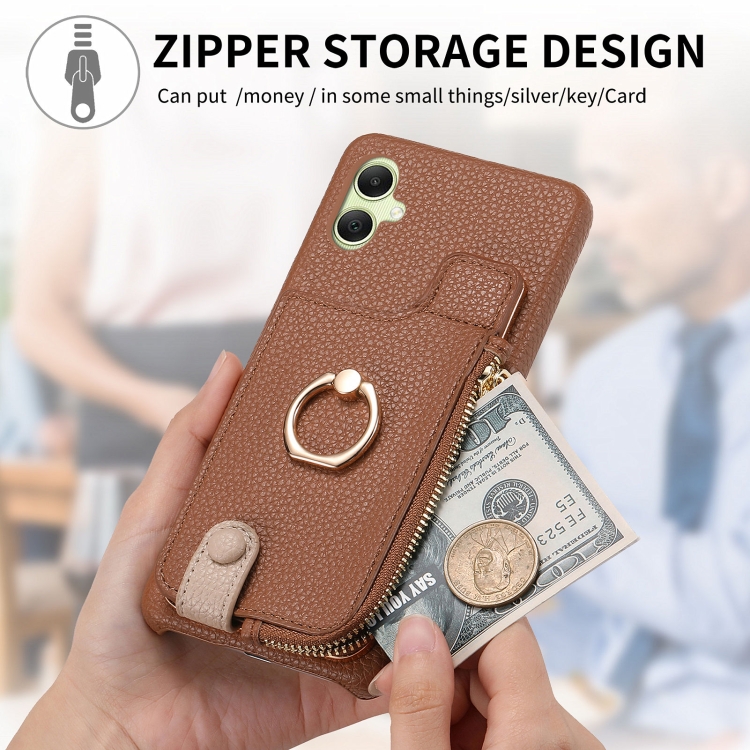 Funda para Teléfono Samsung Galaxy A05 Litchi Leather Oil Edge Ring Zipper Wallet Back (Marrón)