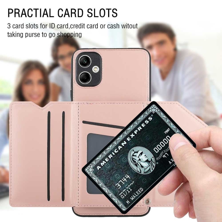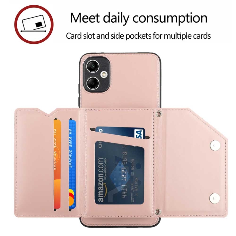 Funda para Teléfono Samsung Galaxy A05 Skin Feel PU + TPU con Ranuras para Tarjetas para PC (Oro Rosa)