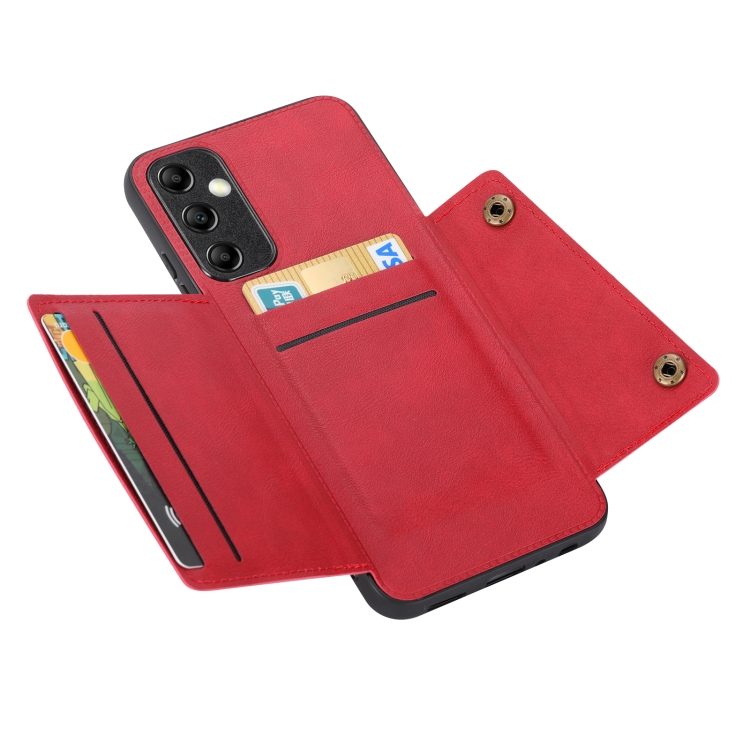 Funda Magnética Samsung Galaxy A05S 4G con Ranuras para Tarjetas y Doble Hebilla (Rojo)