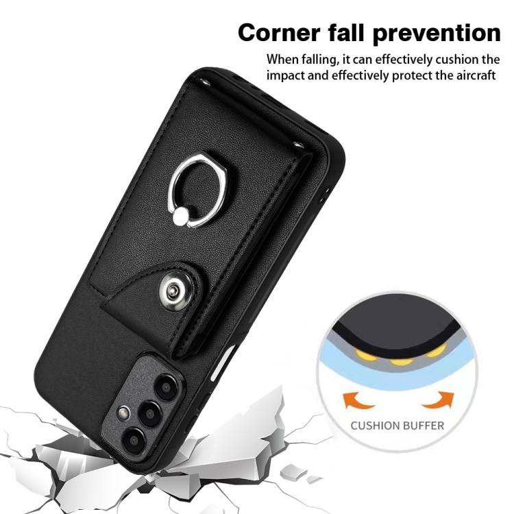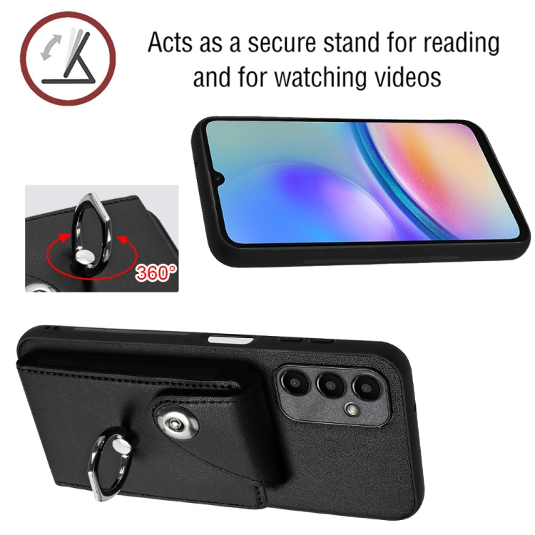 Funda para Teléfono Samsung Galaxy A05S 4G PU con Soporte para Anillo y Bolsa para Tarjeta (Negro)