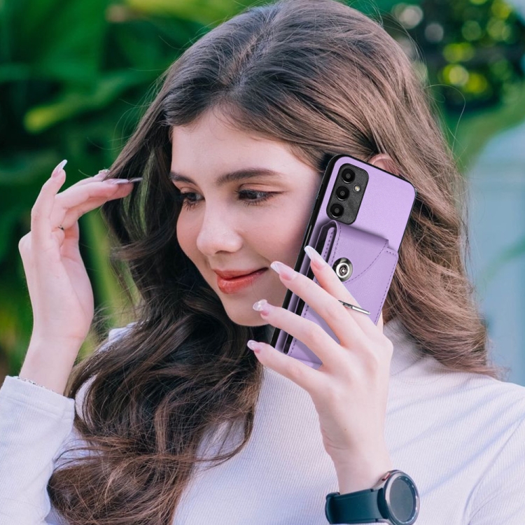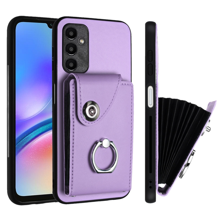 Funda para Teléfono Samsung Galaxy A05S 4G de PU con Soporte para Anillo y Bolsa para Tarjeta (Púrpura)