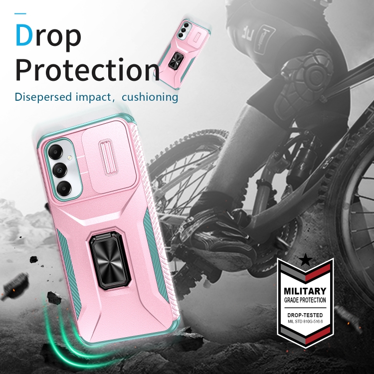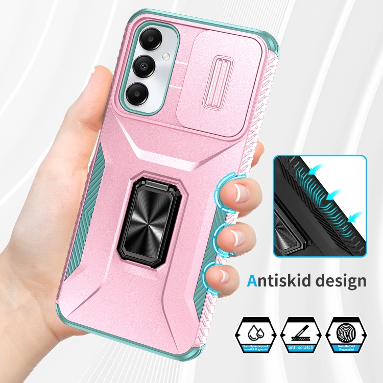 Estuche para Teléfono Samsung Galaxy A05S con Soporte Deslizante para Levas (Rosa + Gris Verde)