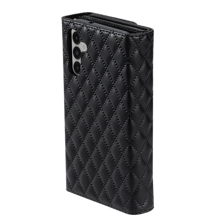Estuche para Teléfono Samsung Galaxy A05S Cuero Rómbico con Billetera MultiTarjeta y Cremallera (Negro)