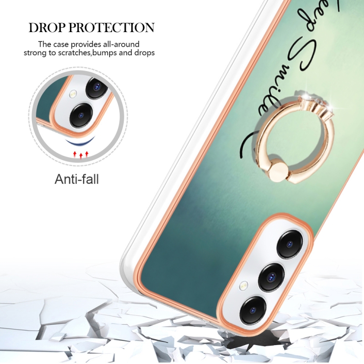 Estuche para Teléfono Samsung Galaxy A05S Imd Doble Cara con Galvanoplastia y Soporte para Anillo (Sonrisa)