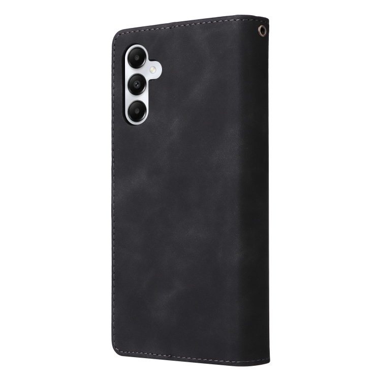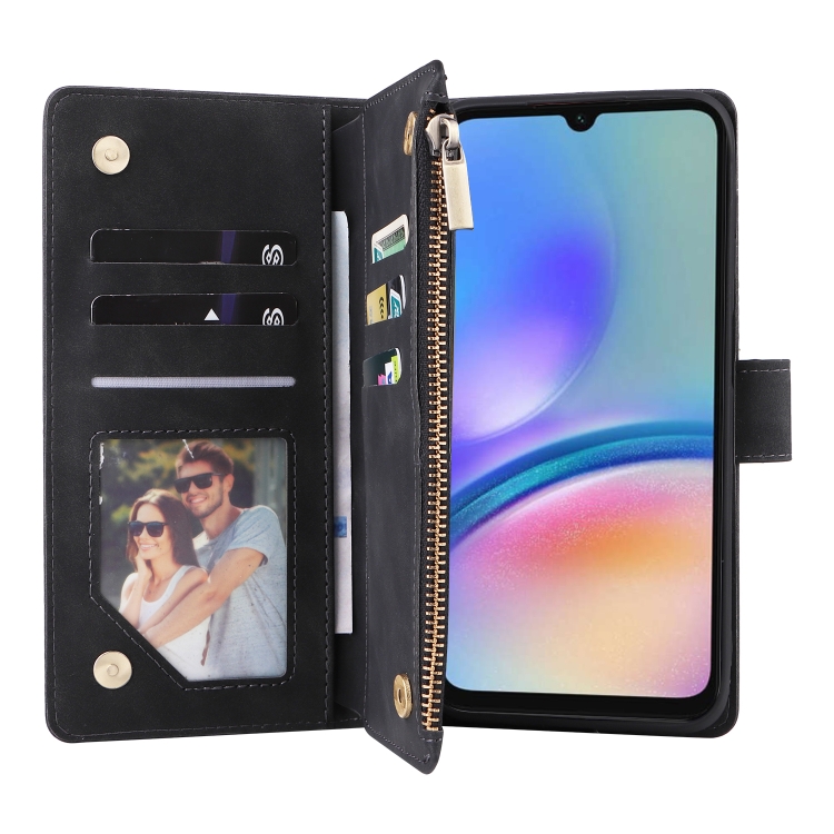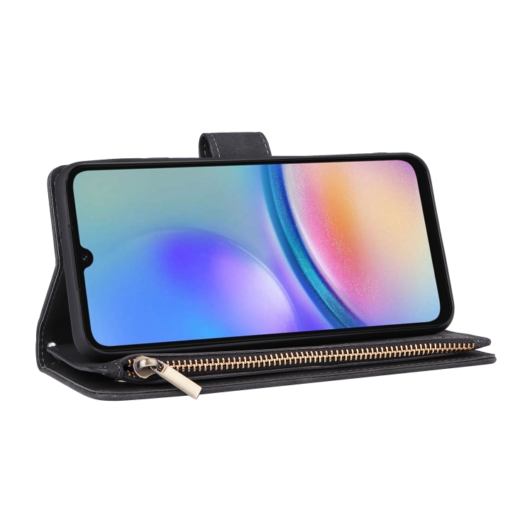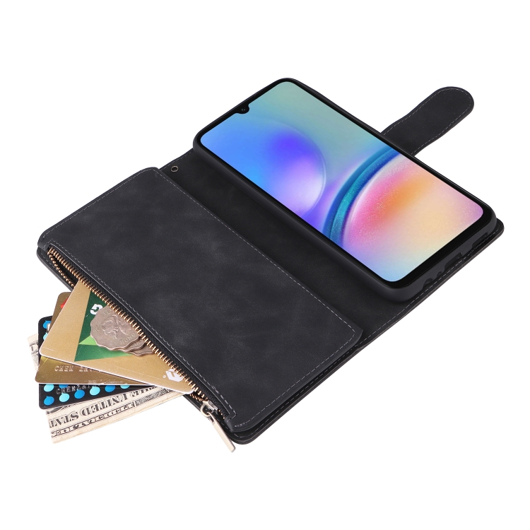 Funda de Cuero Samsung Galaxy A05S con Billetera y Cremallera Esmerilada Multifuncional (Negro)