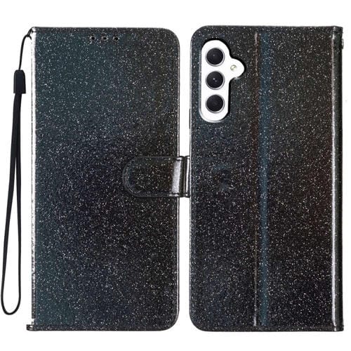 Funda para Teléfono Samsung Galaxy A05S con Tapa de Cuero y Purpurina en Polvo (Negro)