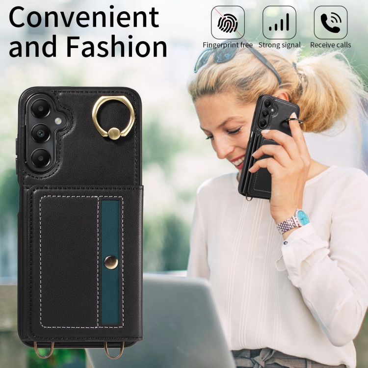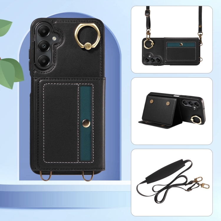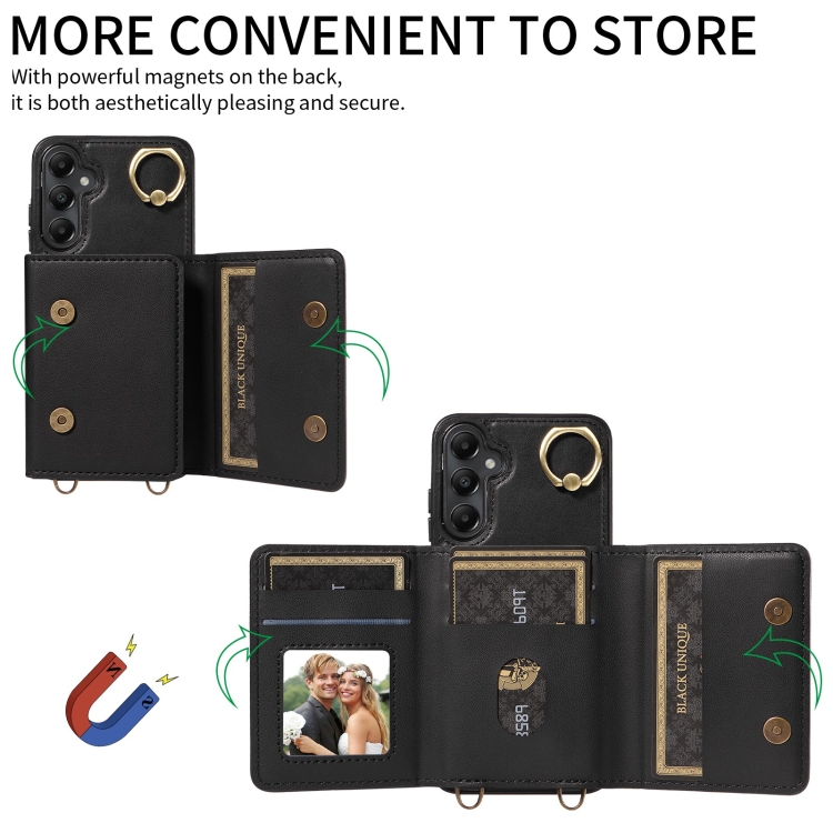 Funda Tipo Billetera Samsung Galaxy A05S Cuero con Soporte para Anillo (Negro)