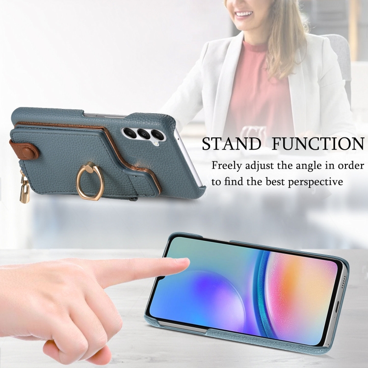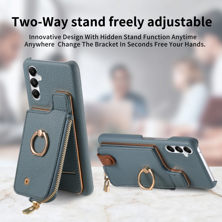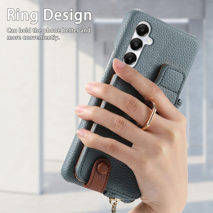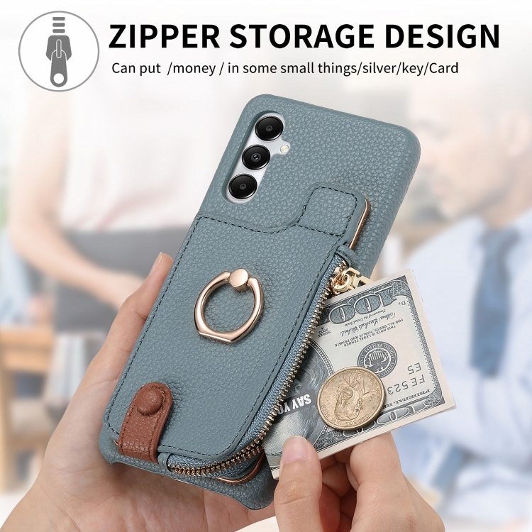 Funda para Samsung Galaxy A05S Litchi Leather Oil Edge Ring Zipper Wallet Back (Azul)