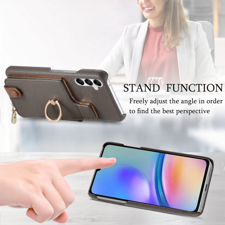 Funda para Teléfono Samsung Galaxy A05S Litchi Leather Oil Edge Ring Zipper Wallet Back (Gris)