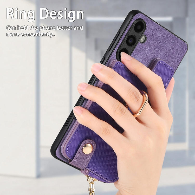 Funda para Teléfono Samsung Galaxy A12 5G con Anillo de Cuero Cruzado, Cremallera Vertical y Billetera Trasera (Púrpura)