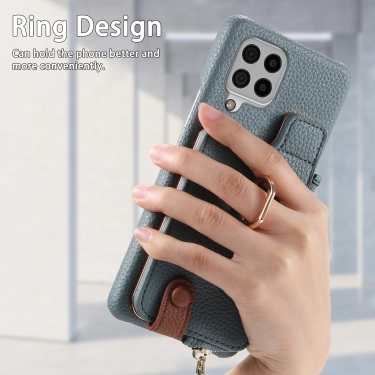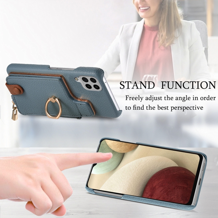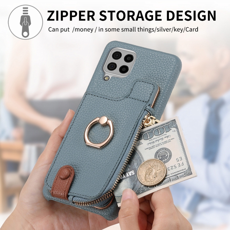 Funda para Teléfono Samsung Galaxy A12 5G Litchi Leather Oil Edge Ring Zipper Wallet Back (Azul)
