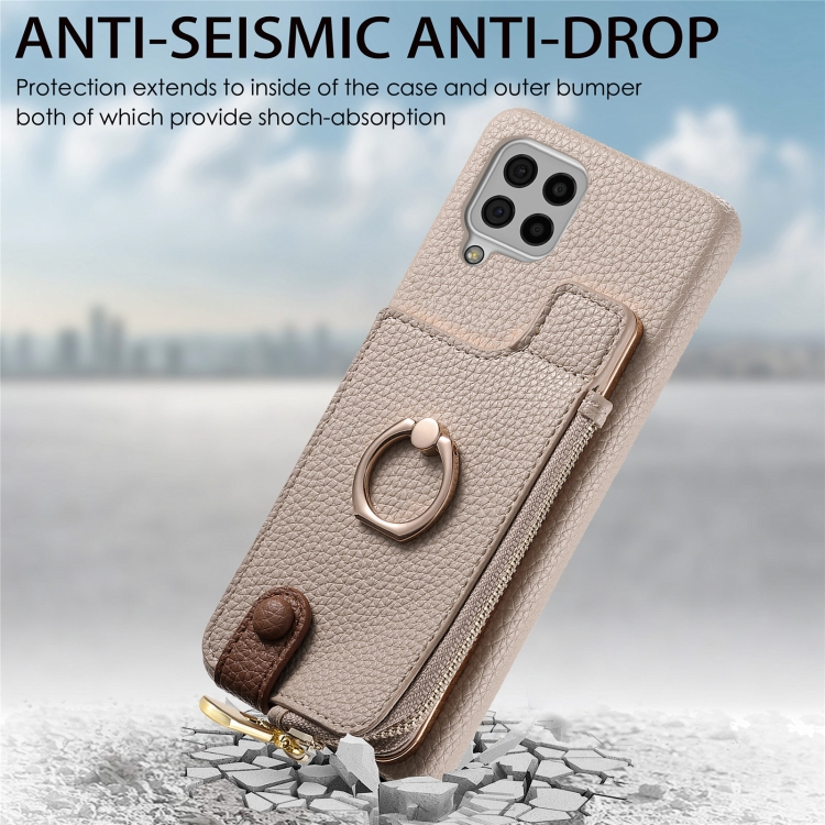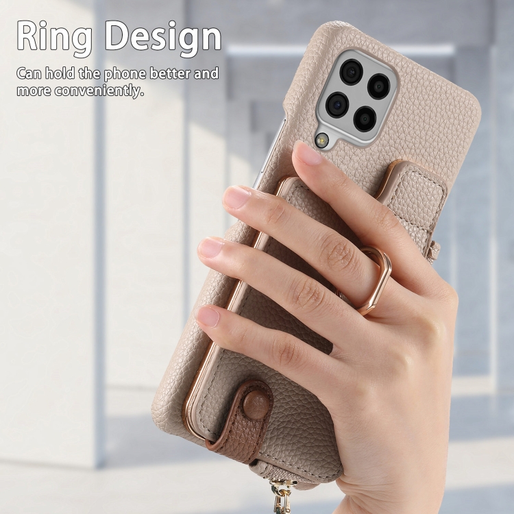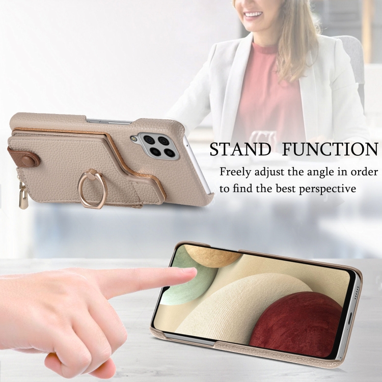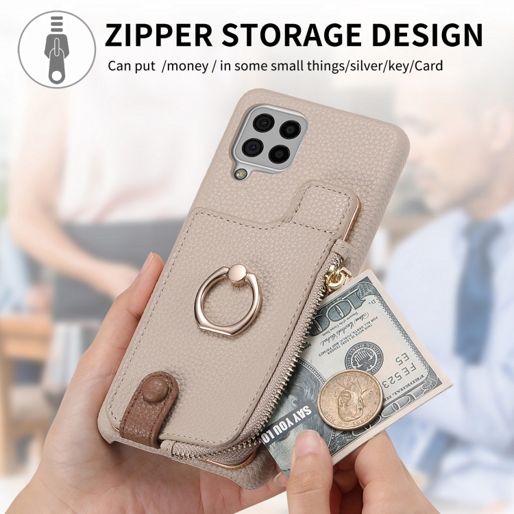 Funda para Samsung Galaxy A12 5G Litchi Leather Oil Edge Ring Zipper Wallet Back (Blanco)