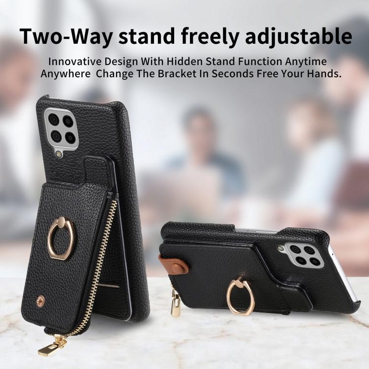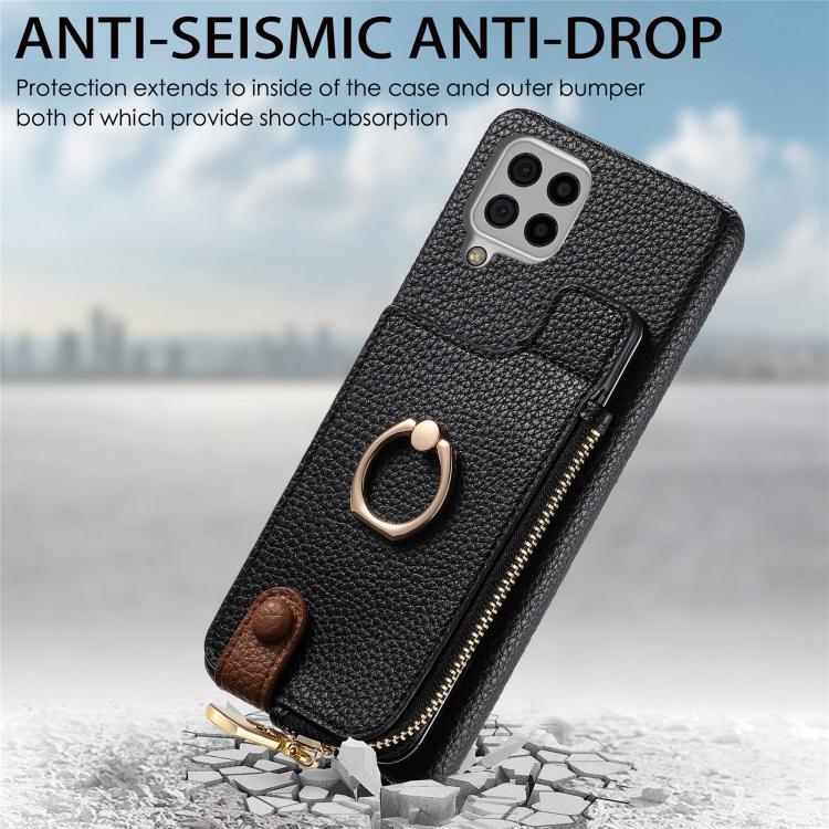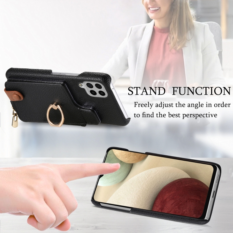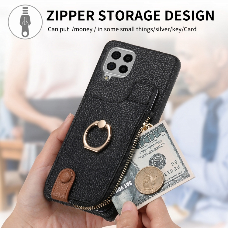 Funda para Teléfono Samsung Galaxy A12 5G Litchi Leather Oil Edge Ring Zipper Wallet (Negro)
