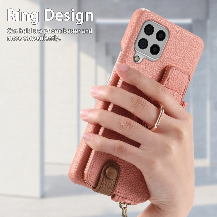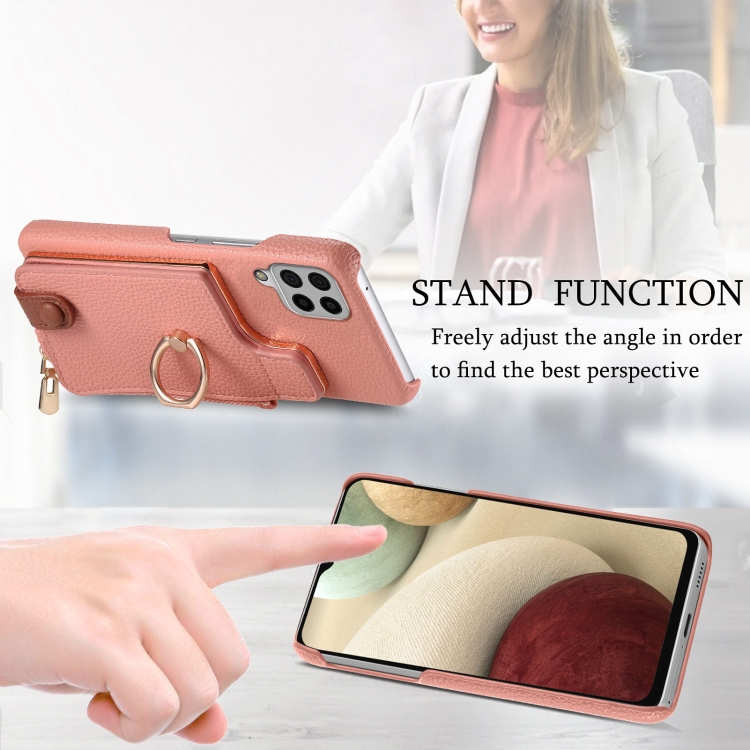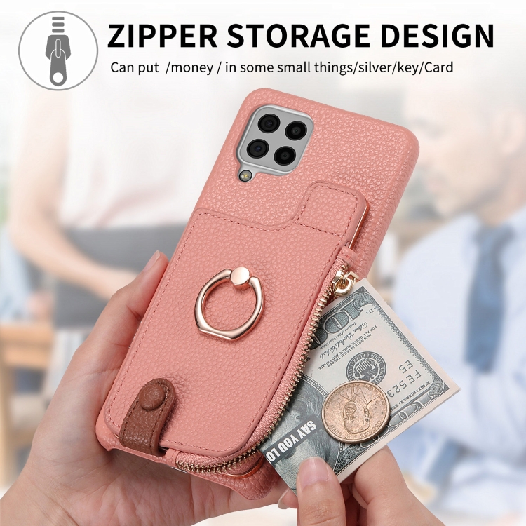 Funda para teléfono Samsung Galaxy A12 5G Litchi Leather Oil Edge Ring Zipper Wallet Back (Rosa)