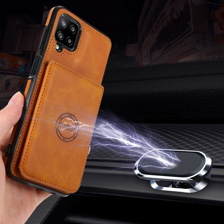 Funda para Samsung Galaxy A12 5G Textura de Tarjeta Magnética Pu (Marrón)