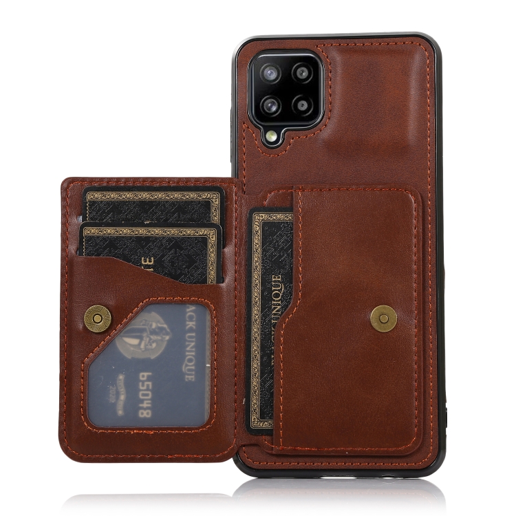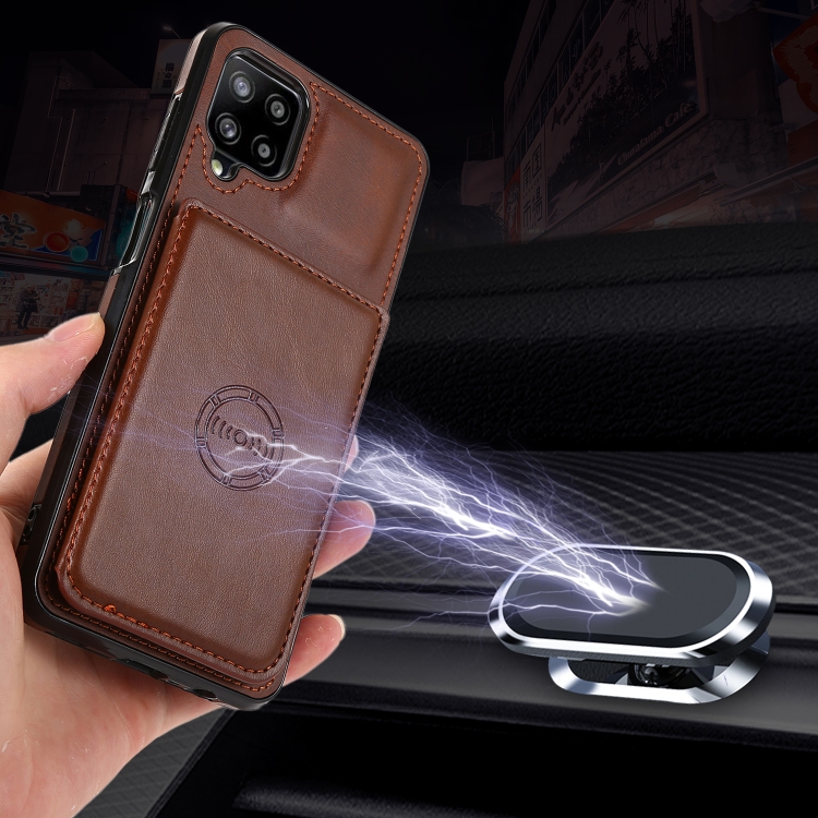 Funda para Samsung Galaxy A12 5G Texture Magnética Tarjeta Bolsa de la Pus (Café)