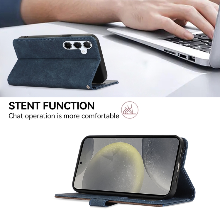 Funda de Cuero Abeel para Samsung Galaxy A12 Color Block Magnética Rfid (Azul-Marrón)