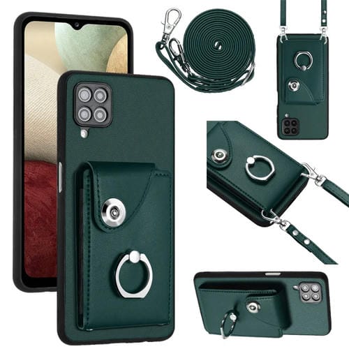 Funda para Teléfono Samsung Galaxy A12 con Soporte para Anillo y Bolsa para Tarjeta con Cordón Largo (Verde)