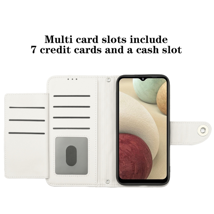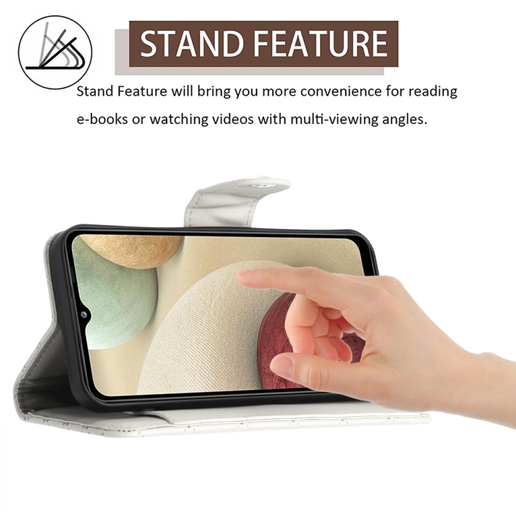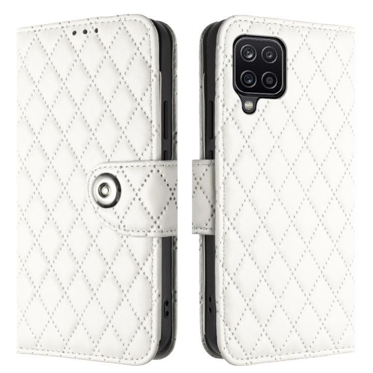 Funda de Cuero para Samsung Galaxy A12 / M12 con Tapa Textura Romboidal y Cordón (Blanco)