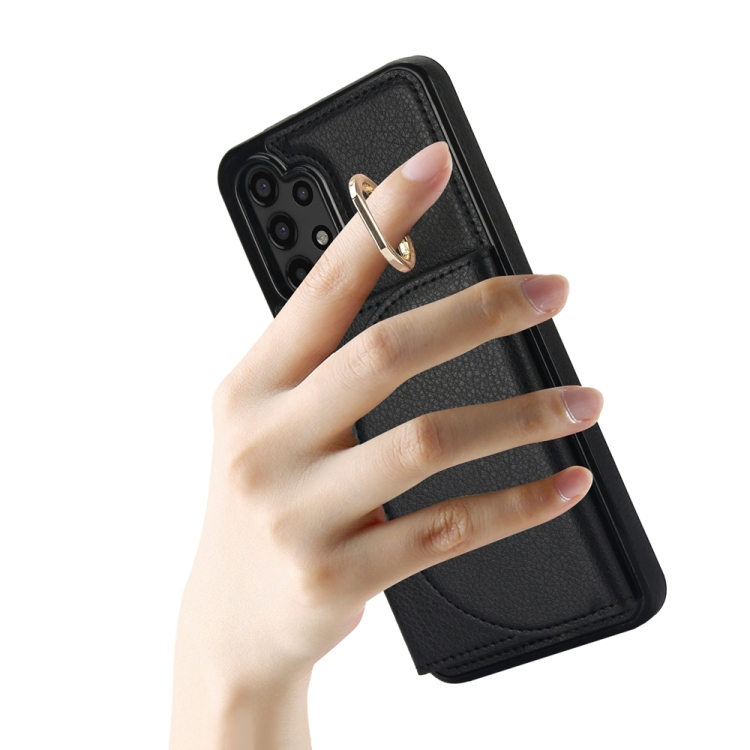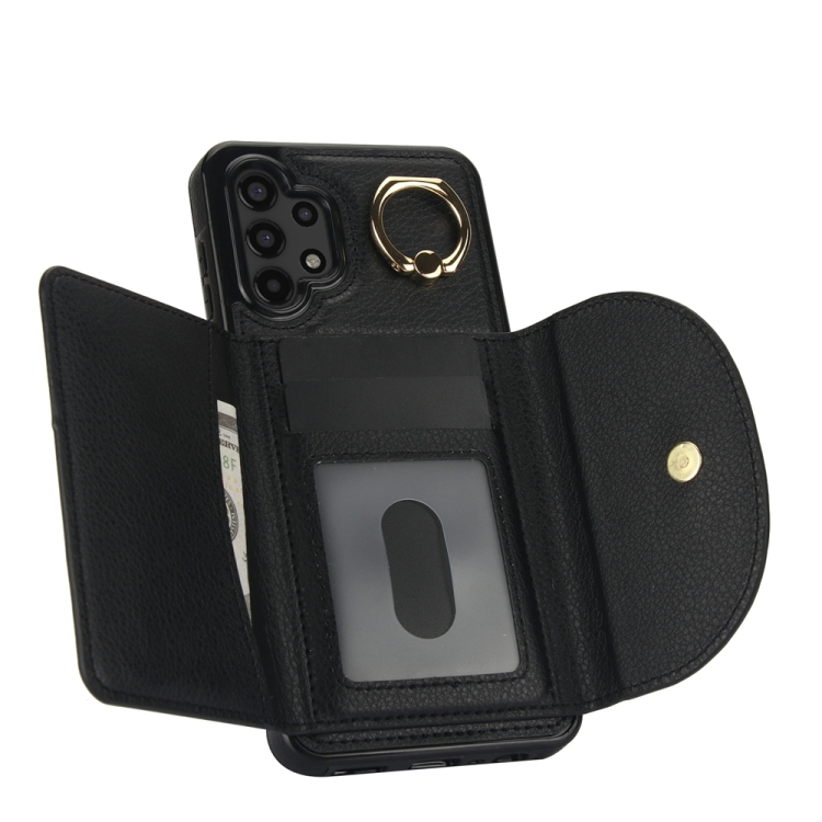 Funda para Teléfono Samsung Galaxy A13 4G/5G Ym007 con Soporte para Anillo y Tarjeta (Negro)