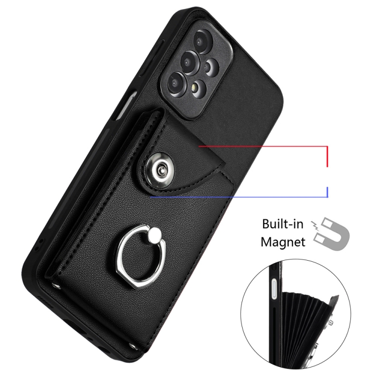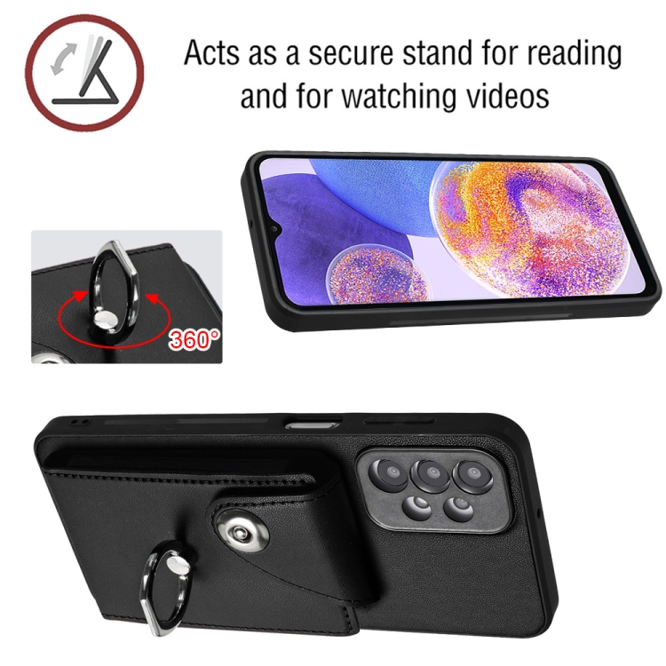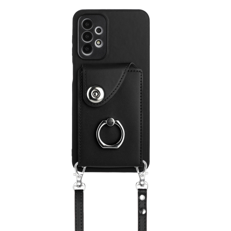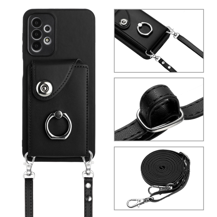 Funda para Teléfono Samsung Galaxy A13 4G con Soporte para Anillo y Bolsa para Tarjeta con Cordón Largo (Negro)