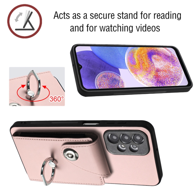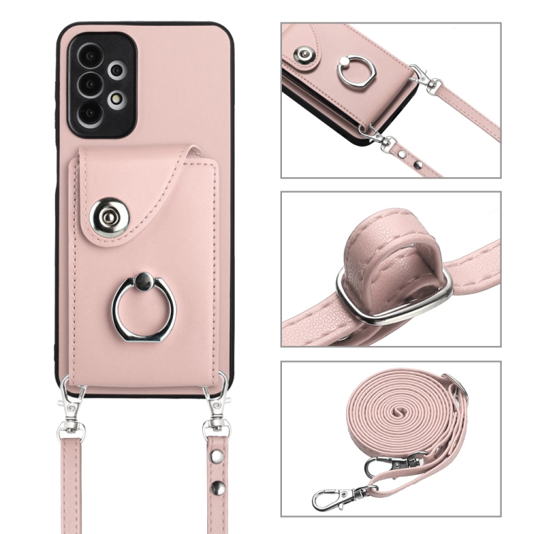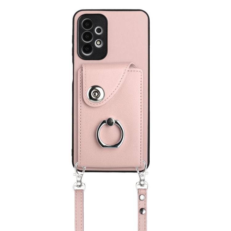 Funda para Teléfono Samsung Galaxy A13 4G con Soporte para Anillo y Bolsa para Tarjeta con Cordón Largo (Rosa)