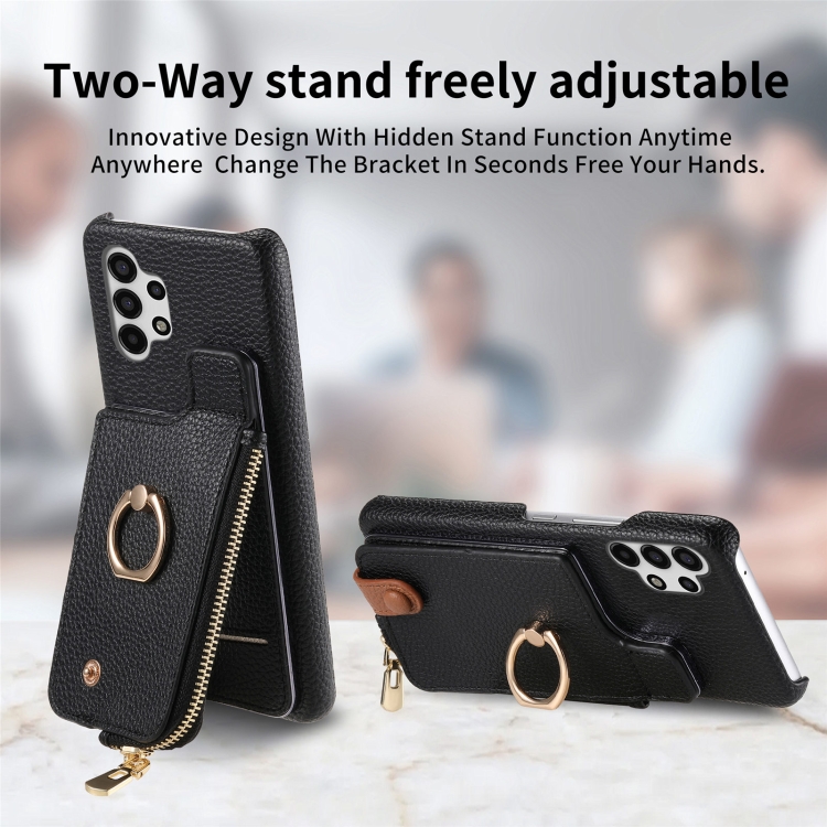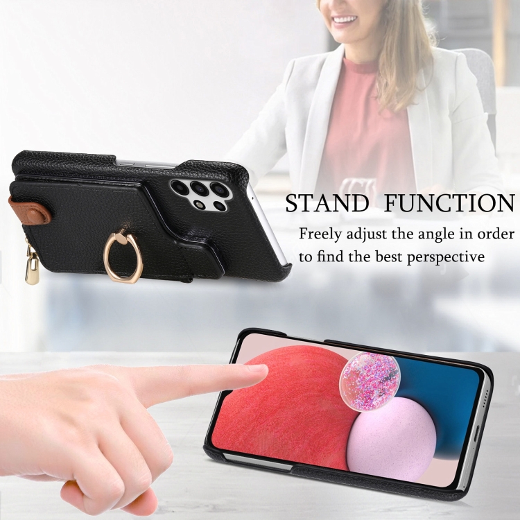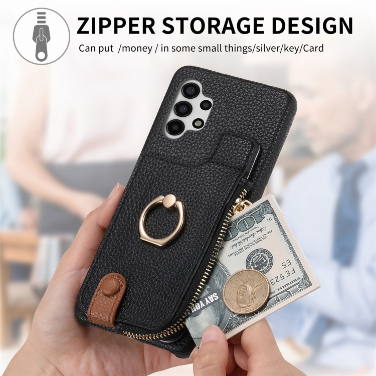 Funda para Samsung Galaxy A13 4G Litchi Leather Oil Edge Ring Zipper Wallet Back (Negro)
