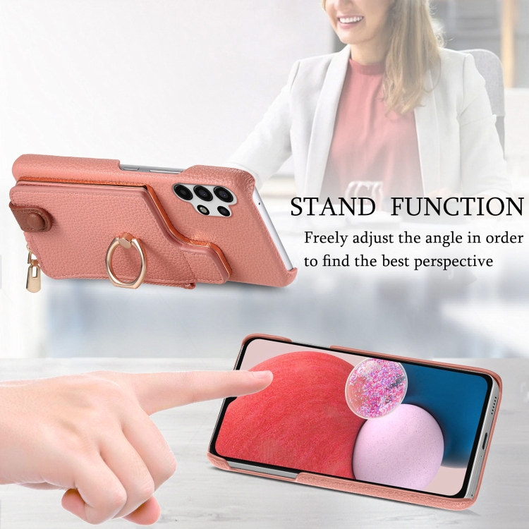 Funda para Teléfono Samsung Galaxy A13 4G Litchi Leather Oil Edge Ring Zipper Wallet Back (Rosa)