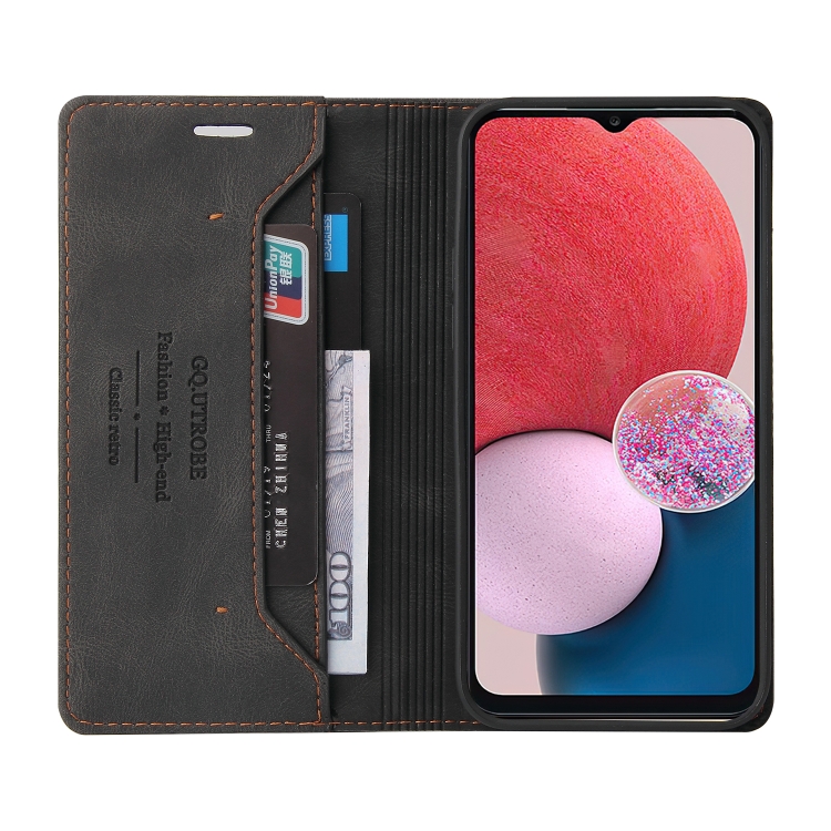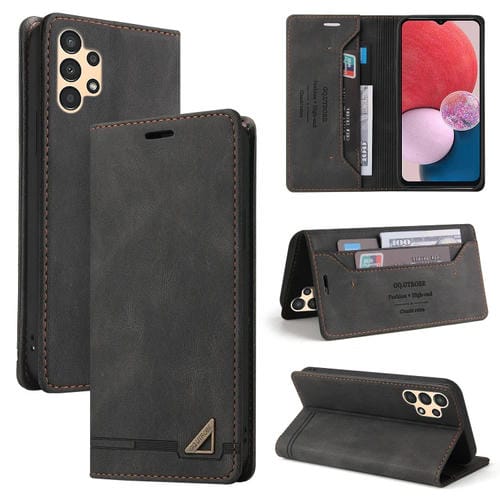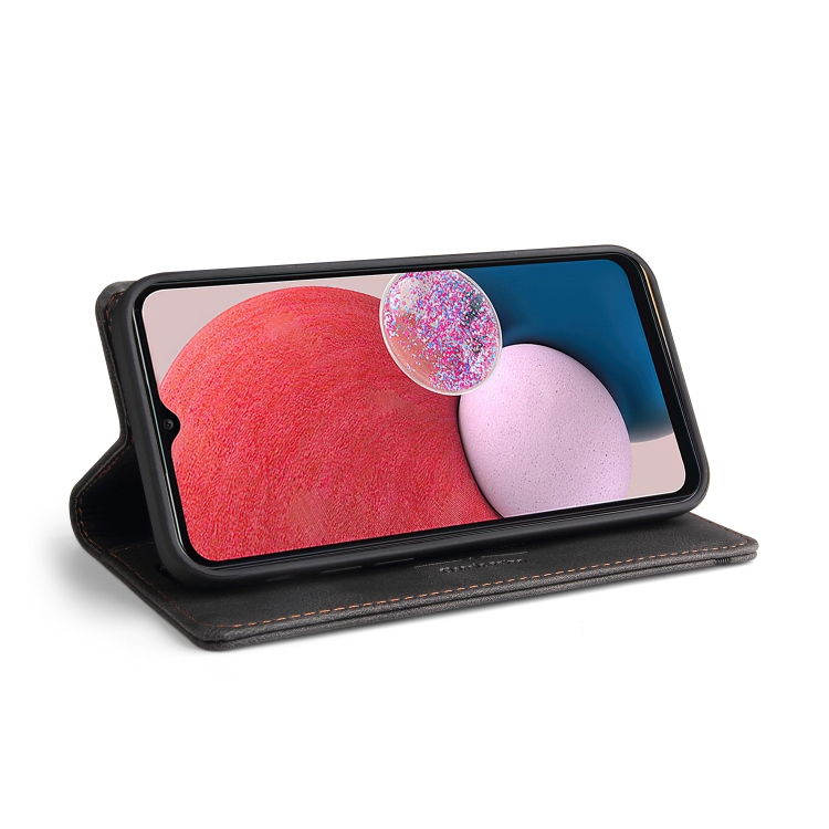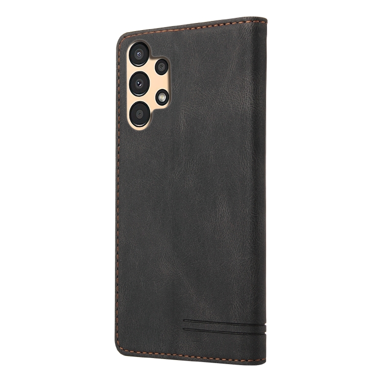 Funda de Cuero para Samsung Galaxy A13 4G Skin Feel con Tapa Horizontal Cepillo Antirrobo y Soporte (Negro)
