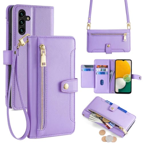 Funda para Teléfono Samsung Galaxy A13 5G Cuero con Billetera Cremallera Cuerpo Cruzado Textura de Oveja (Púrpura)