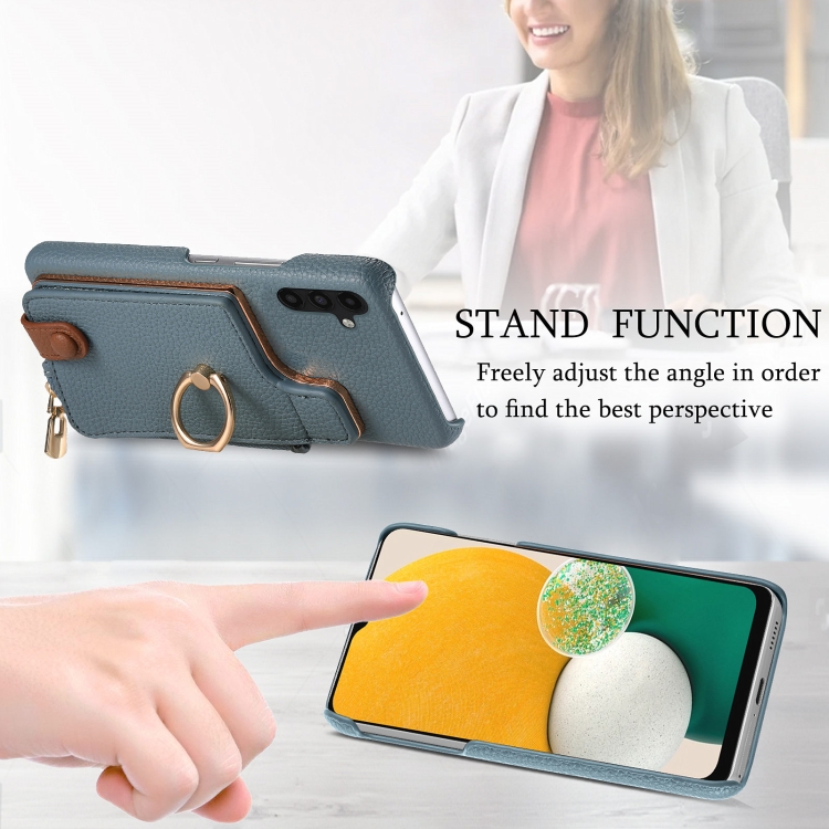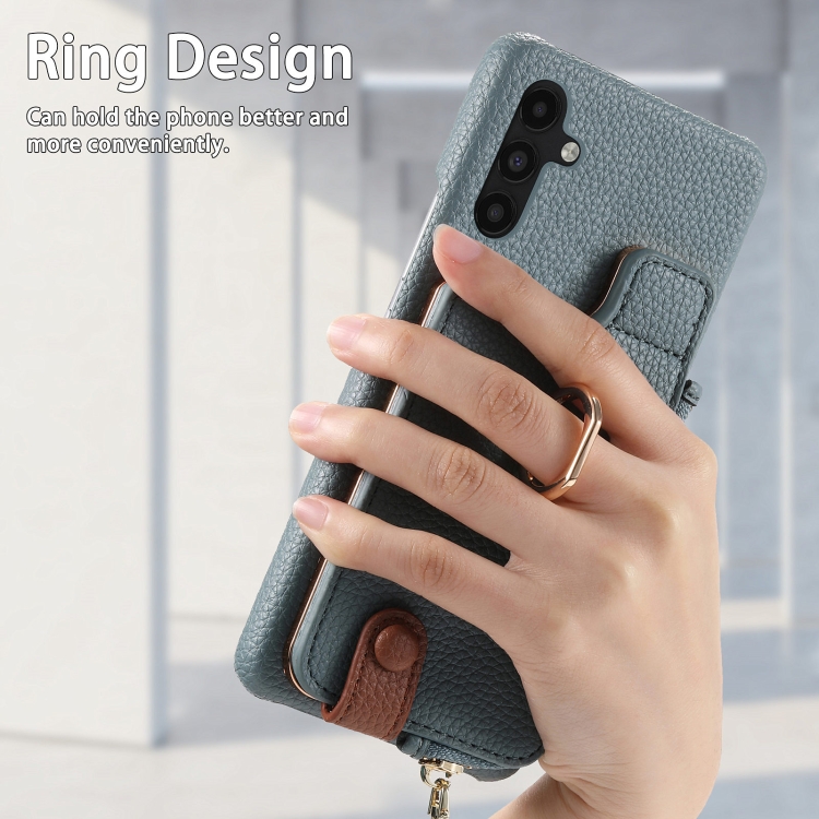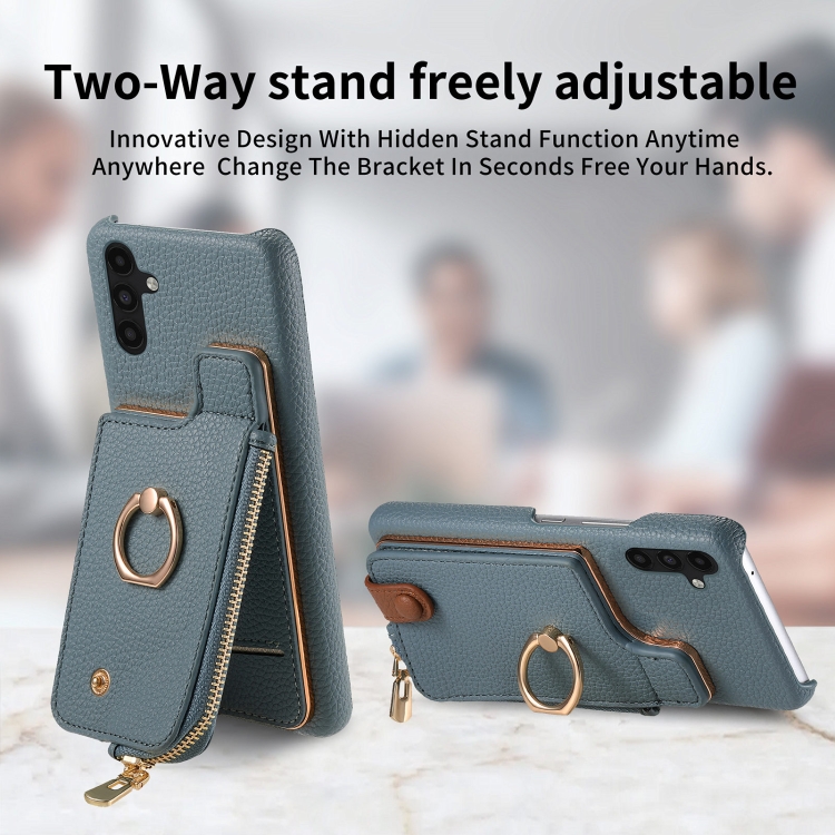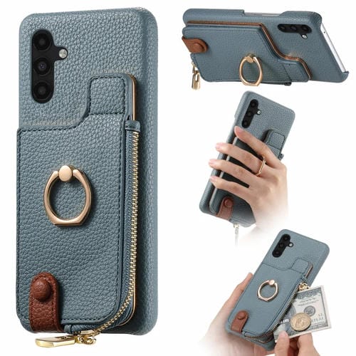 Funda para Samsung Galaxy A13 5G Litchi Leather Oil Edge Ring Zipper Wallet Back (Azul)