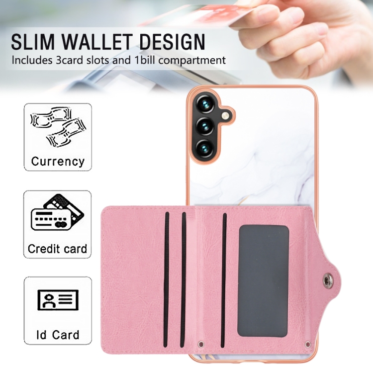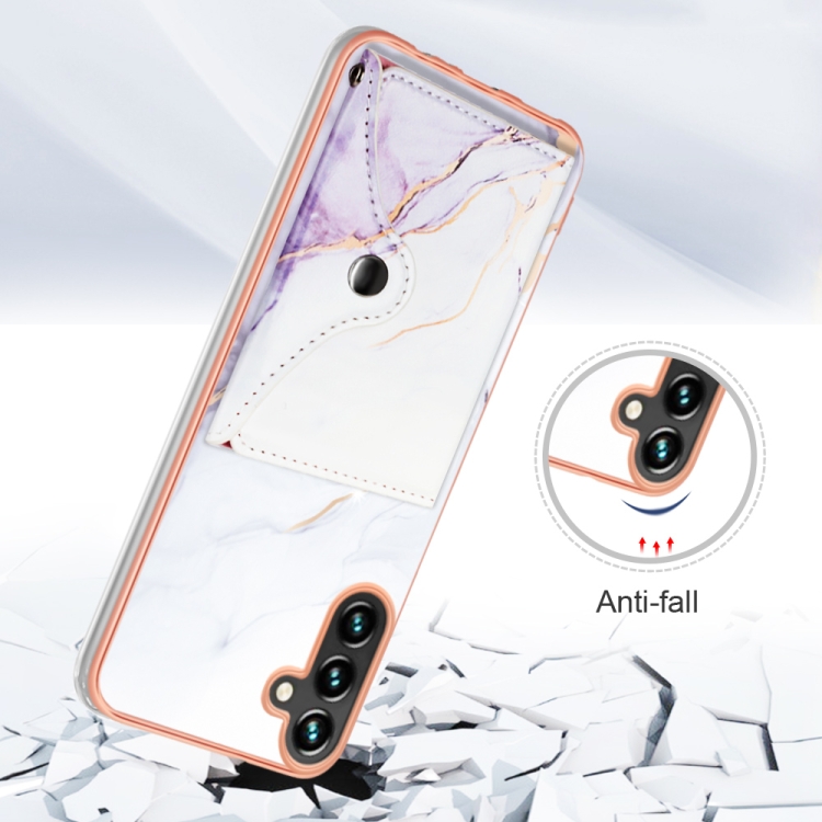 Estuche para Teléfono Samsung Galaxy A14 5G con Ranura para Tarjeta Imd y Patrón de Mármol (Blanco y Morado)