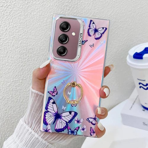 Estuche para Teléfono Samsung Galaxy A14 5G con Soporte Anillo Mariposa Láser (Morado)
