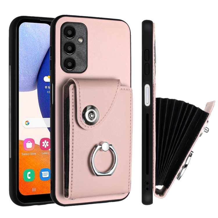 Funda para Teléfono Samsung Galaxy A14 5G Pu con Soporte para Anillo y Bolsa para Tarjeta (Rosa)