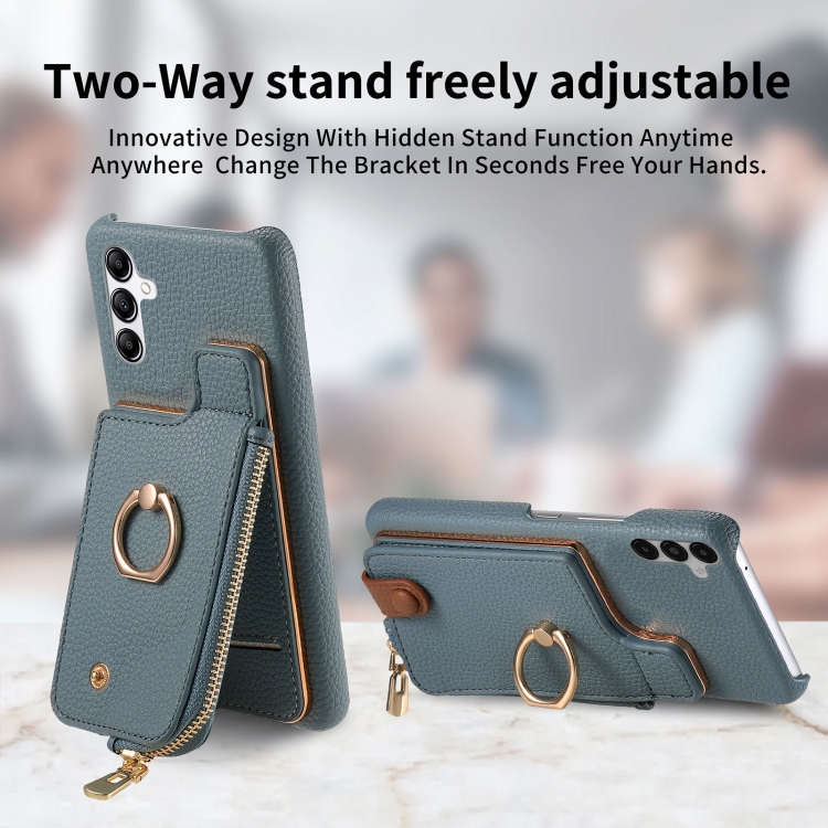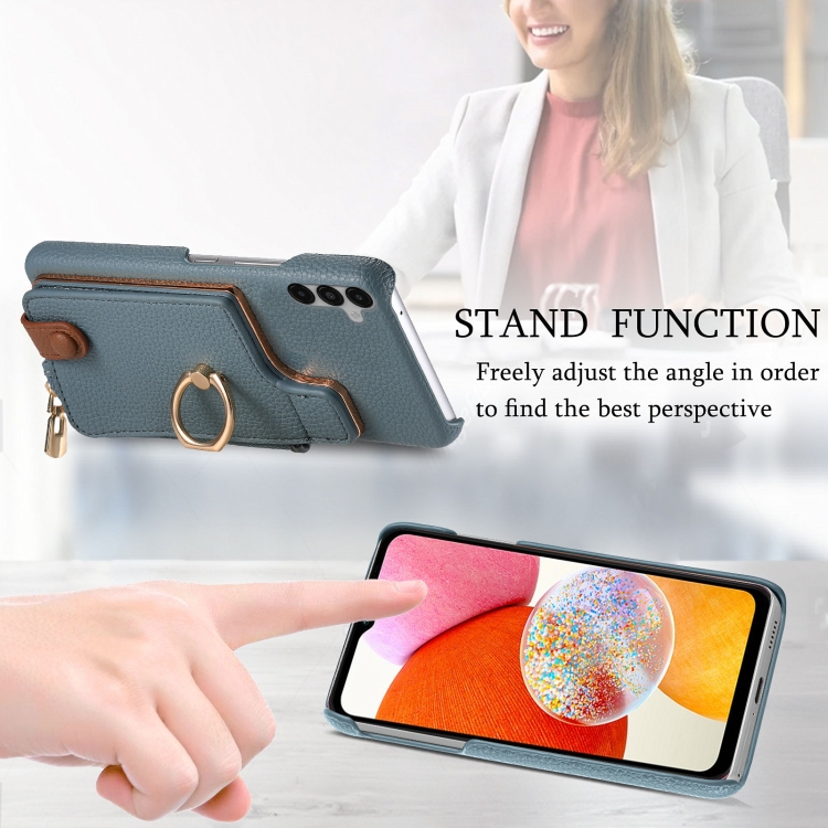 Funda para Samsung Galaxy A14 Litchi Leather Oil Edge Ring Zipper Wallet Back (Azul)