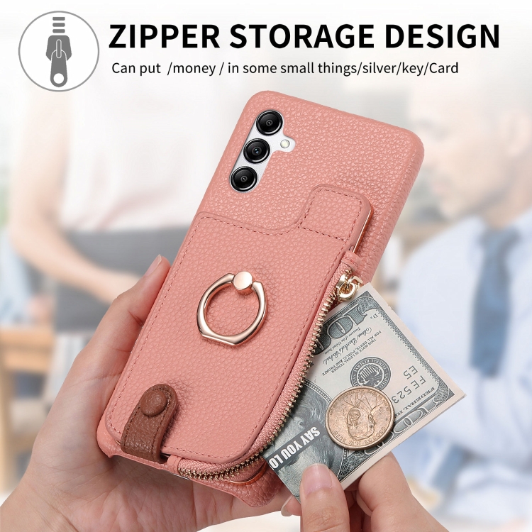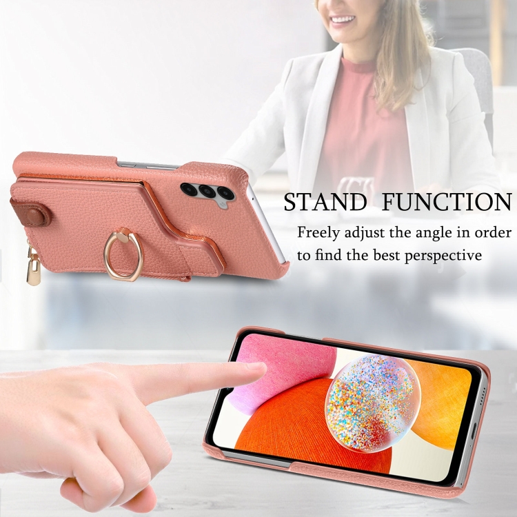 Funda para Samsung Galaxy A14 Litchi Leather Oil Edge Ring Zipper Wallet Back (Rosa)