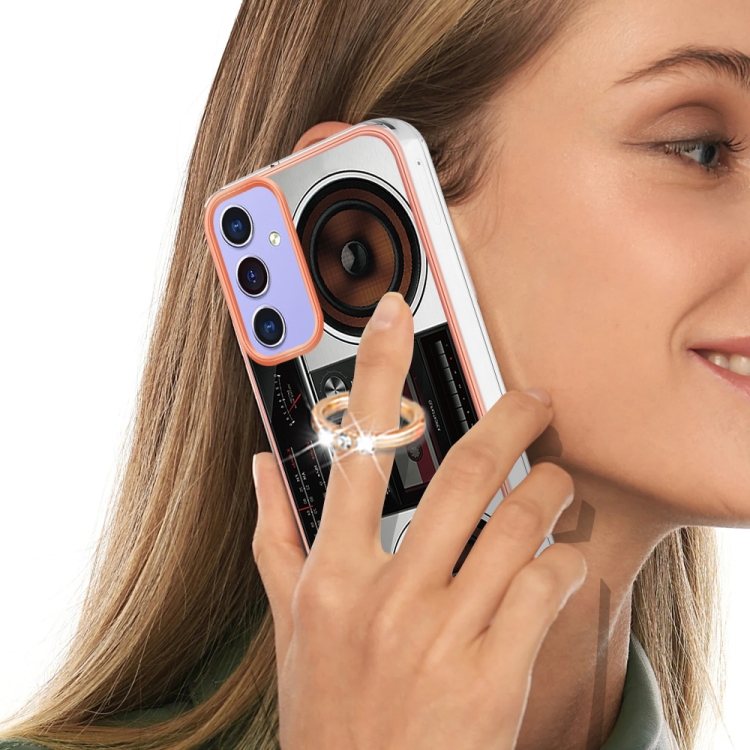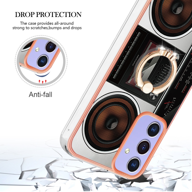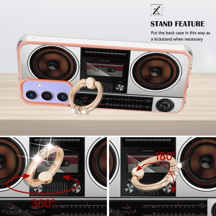 Estuche para Teléfono Samsung Galaxy A15 5G Imd Doble Cara Galvanoplastia Soporte para Anillo (Radio Retro)