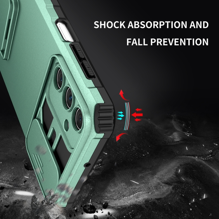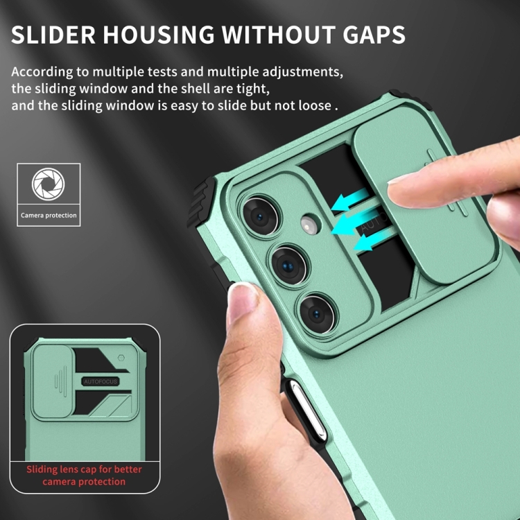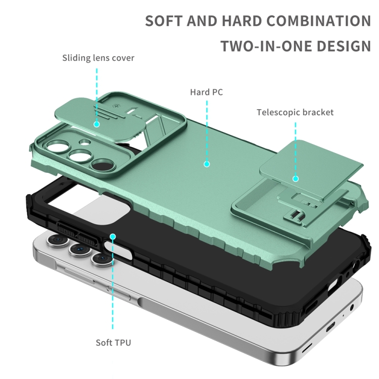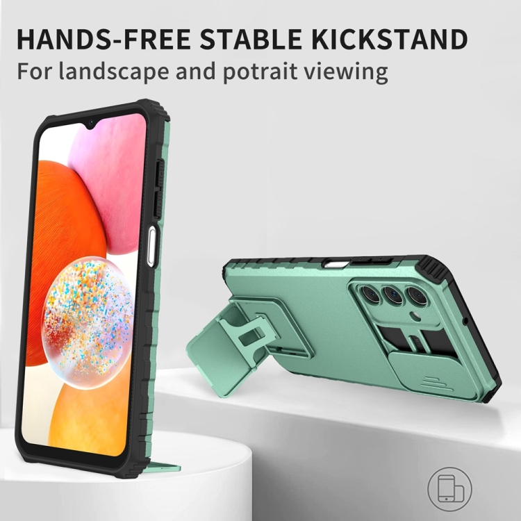 Funda para Teléfono Samsung Galaxy A15 5G con Soporte Estereoscópico y Escudo de Levas Deslizante (Verde Claro)