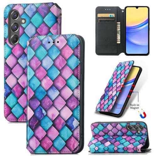 Funda para Samsung Galaxy A15 Caseneo Cuero Magnética Colorida (Escamas Moradas)