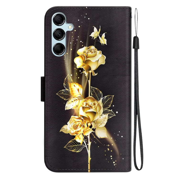 Funda de Cuero Samsung Galaxy A15 Dibujo Coloreado Textura de Cristal (Mariposa Dorada Rosa)