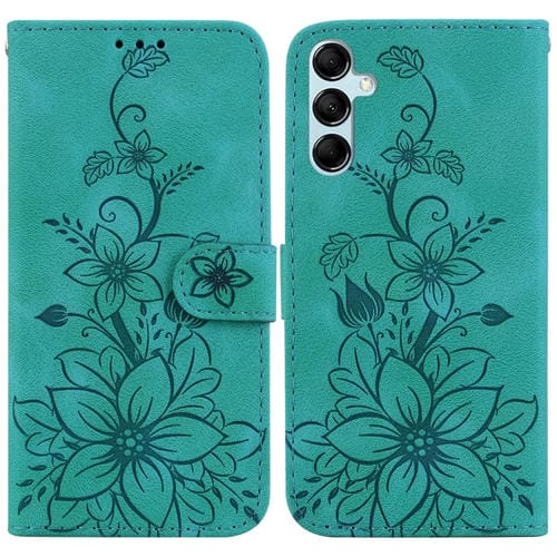 Funda de Cuero Samsung Galaxy A15 con Relieve Lily (Verde)