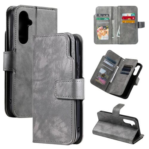 Funda de Cuero para Samsung Galaxy A15 con Billetera Triple Plegable para 9 Tarjetas (Gris)