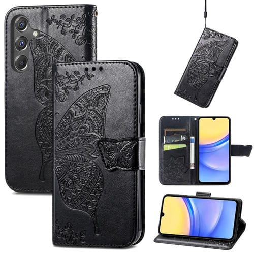 Funda para Teléfono Samsung Galaxy A15 Cuero Relieve Flor de Amor y Mariposa (Negro)