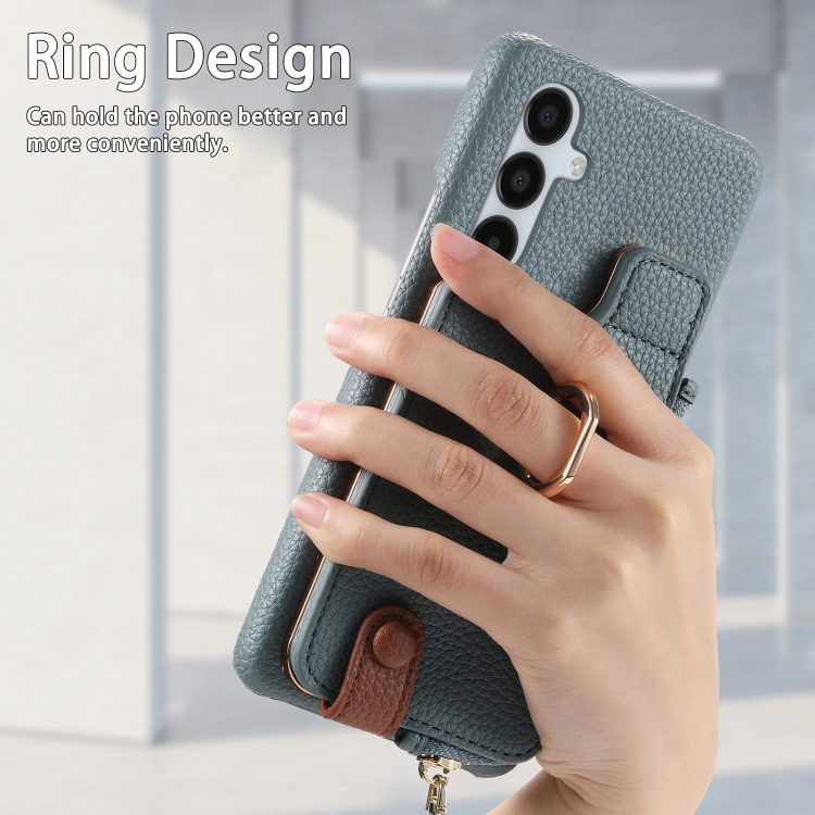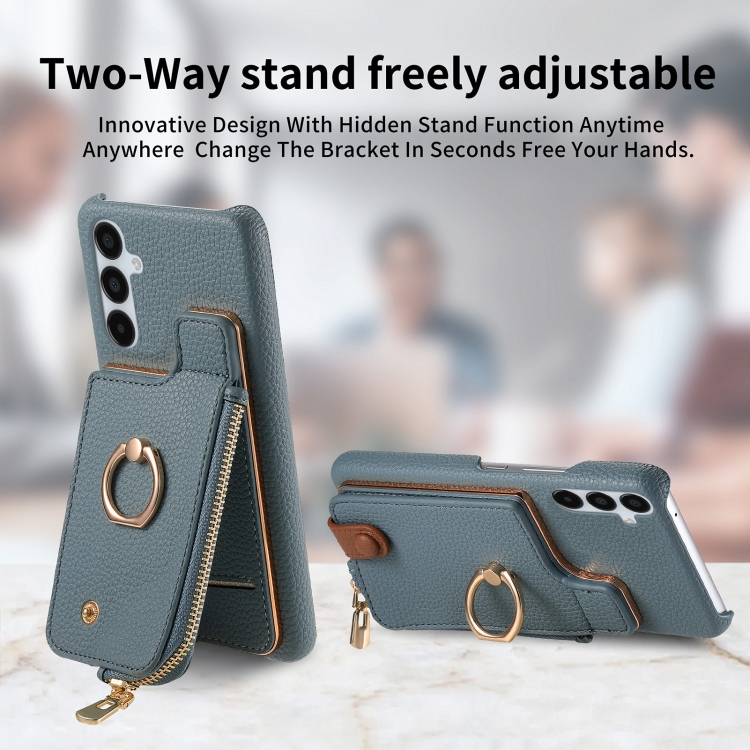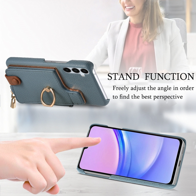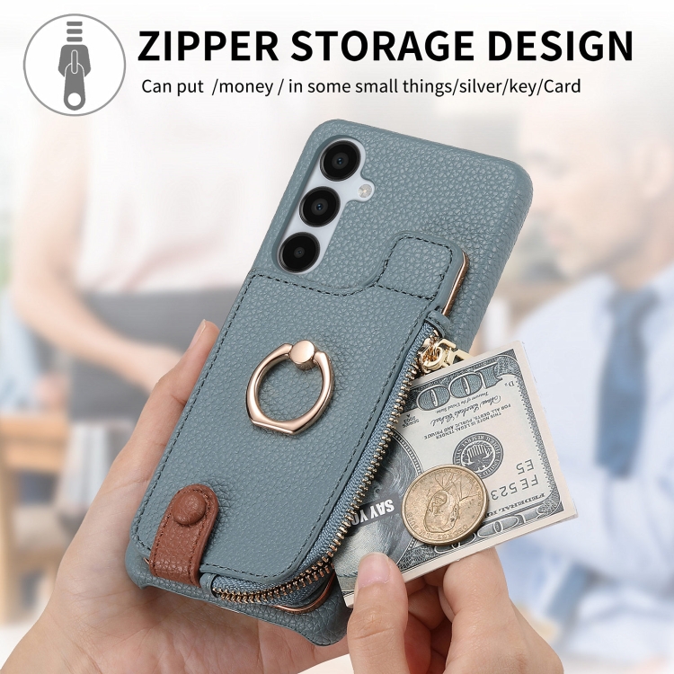 Funda para Samsung Galaxy A15 Litchi Leather Oil Edge Ring Zipper Wallet Back (Azul)