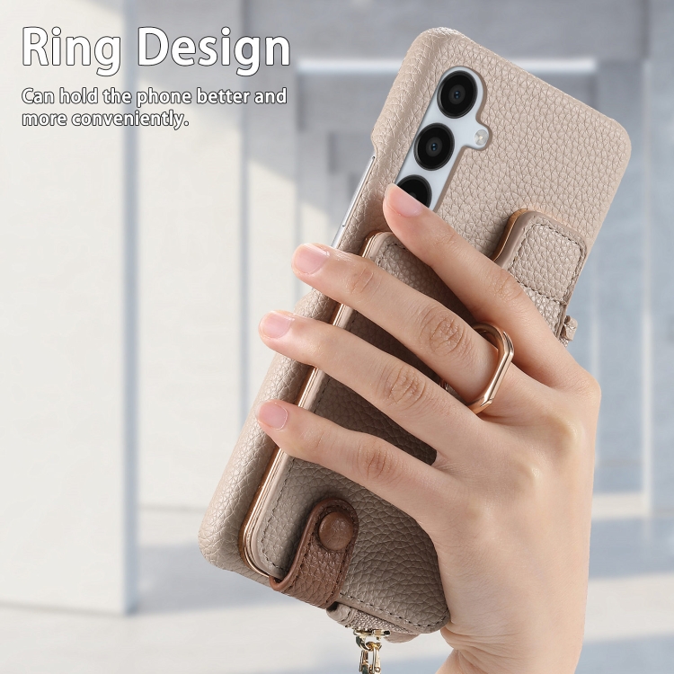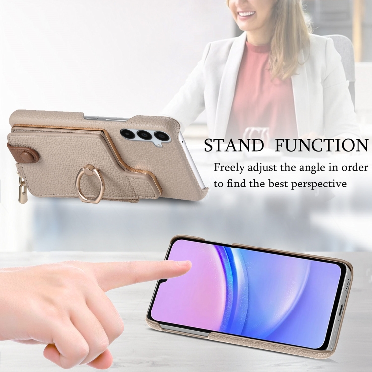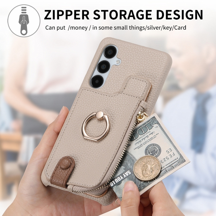 Funda para Samsung Galaxy A15 Litchi Leather Oil Edge Ring Zipper Wallet Back (Blanco)