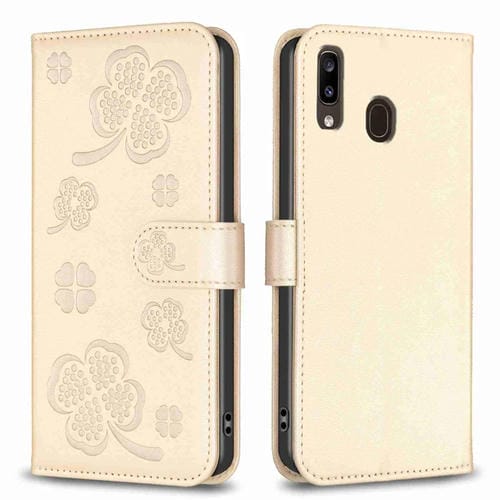 Funda para Teléfono Samsung Galaxy A20 / A30 Cuero Relieve Cuatro Hojas (Dorado)