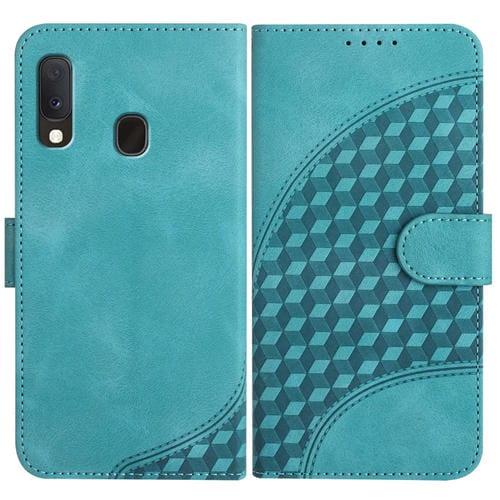 Funda de Cuero Samsung Galaxy A20E A10E Yx0060 Relieve Cabeza de Elefante con Cordón (Azul Claro)