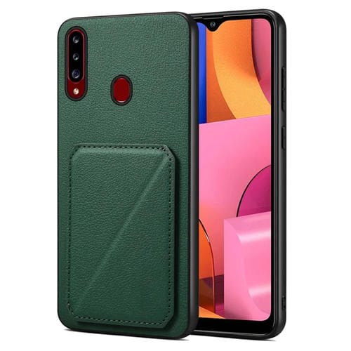 Funda para teléfono Samsung Galaxy A20S Denior con parte trasera de piel de becerro de imitación y soporte (Verde)