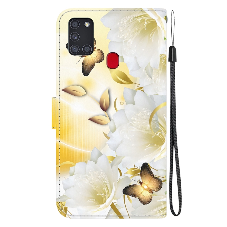 Estuche para Teléfono Samsung Galaxy A21S Cuero Dibujo Coloreado Textura de Cristal (Epiphyllum de Mariposa Dorada)